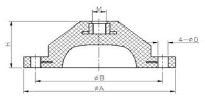 JGD型橡膠減振器由內置剪切鋼板、固定件和橡膠體粘結而成。產品分為四種尺寸結構。軸向承受荷載從10-1260Kg,額定荷載下靜變形在3-12mm范圍內,相應固有頻率在9-16Hz范圍,阻尼比大于0.05。能在-20C—+80°C范圍內保持正常工作。該減振器對1000r/min以上回轉及往復機械振動的隔離具有良好的隔振效果。